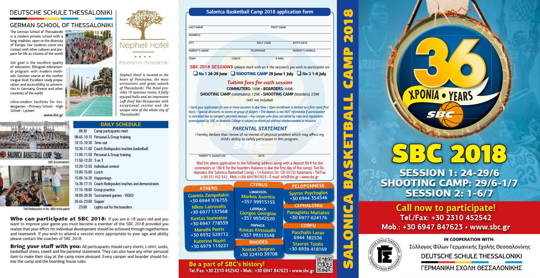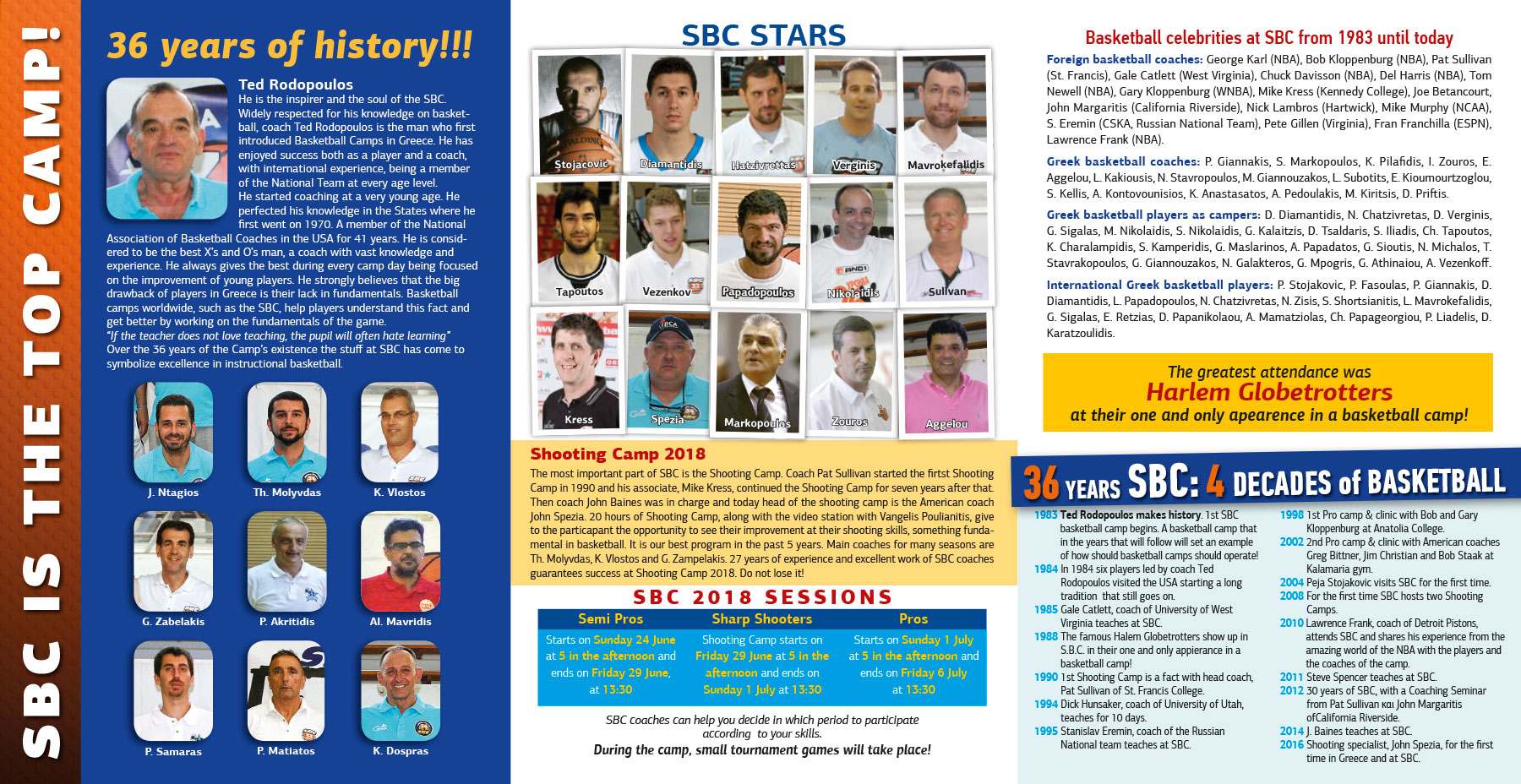 The dates for the 36th S.B.C. , are: 1st Session: 24/6 - 29/6 Shooting Camp : 29/6 - 1/7 2η Πείοδος : 1/7 - 6/7 For more information call +302310 - 452542 & +306947 - 847623